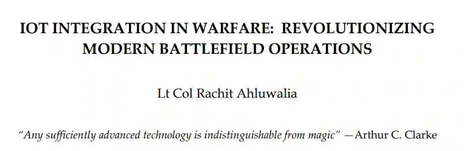 长期以来,国防领域一直是众多新兴技术的源泉。获得战场优势一直是探索和尝试激进想法的驱动因素。第一次海湾战争后,时任美国海军作战司令的威廉-欧文斯上将在美国国家安全研究所发表的一篇研究文章中提出了 “系统簇”这一概念,从而使这种想法开始成形。他阐述了数据和网络改变作战的方式。这一观点转化为 “网络中心战”概念,它是三个领域的融合,即物理领域(进行演习并从传感器获取数据)、信息领域(传输和存档数据)和认知领域(处理和分析数据)。在这一概念提出二十多年后的今天,世界各地的军事领导人和国防专家都对这一概念的实施持乐观态度,这主要是由于物联网技术的成熟。乌克兰地面部队广泛使用标枪反坦克导弹和 “弹簧刀 ”隐形导弹来挑战强大的俄罗斯装甲部队,这就是物联网技术在战区成功应用的例证。