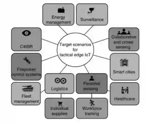 协作与人群感应。战术资源的流动性和机动性给现代战场带来了一系列独特的通信挑战。协作传感是指在移动设备之间传播传感器数据的过程,通常使用可靠的短程通信。物联网节点可利用闲置传感器来满足自身的传感需求。通过将传感器与任务分配相匹配,可为任何临时 ISR 任务提供便利。因此,作战指挥官可支配的可用传感和通信资源可得到最佳利用。
