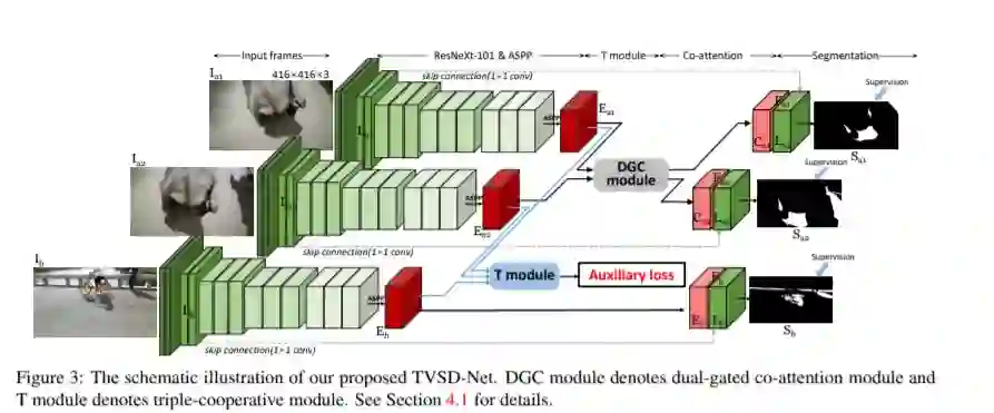 近年来,在单个图像中进行阴影检测已引起了学界广泛的研究兴趣。但是,关于动态视频场景中阴影检测的探索工作却很少,其面临的一个主要瓶颈是缺乏具有高质量像素级标注的视频阴影检测数据集。在本工作中,我们收集和标注了一个新的视频阴影检测数据集(ViSha),其中包含120个视频,总计11685帧,涵盖了60个不同的阴影对象类别,也包括了不同长度、不同运动和照明条件下的视频,并且我们为所有的11685帧都提供了精确的像素级标注。据我们所知,这是用于视频阴影检测的第一个面向深度学习的数据集。此外,我们设计了一个基础模型,即基于三元合作模式的视频阴影检测模型(TVSD-Net)。TVSD-Net以协作的方式利用三元并行网络来学习视频内和视频间级别的判别表示。在网络内部,我们提出了协同注意力模块来约束同一视频中相邻帧的特征,同时引入辅助相似度损失来挖掘不同视频之间的语义信息。最后,我们在ViSha的测试集上对12种相似任务中使用的模型进行了评估(包括单个图像阴影检测器,视频对象分割和显著性检测方法)。实验表明,我们的模型在视频阴影问题上优于上述对比方法。