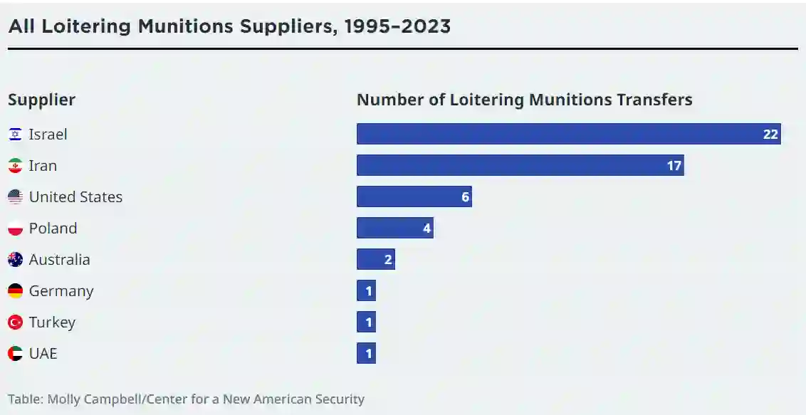 此外,美国和波兰还向乌克兰部队提供了大量致命的 WB Electronics Warmate 和 AeroVironment Switchblade 巡飞弹药。伊朗是神风特攻队无人机的另一个主要供应商,并向俄罗斯和塔吉克斯坦等专制政权以及真主党、胡塞武装和巴勒斯坦伊斯兰组织等出口了大量伊朗飞机制造工业公司(HESA)的 Ababil 和 Shahed 系统。