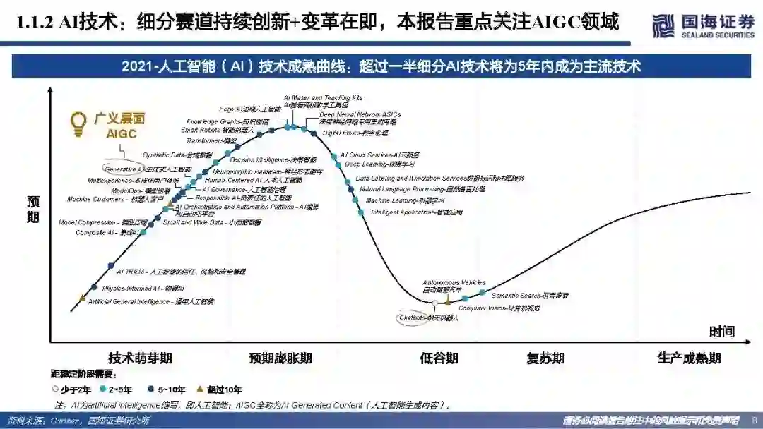 如同蒸汽时代的蒸汽机、电气时代的发电机、信息时代的计算机和互联网,人工智能正成为推动人类进入智能时代的决定性力量。全球产业界充分认识到人工智能技术引领新一轮产业变革的重大意义,纷纷转型发展,抢滩布局人工智能创新生态。人工智能细分赛道持续创新下变革在即,本报告重点关注AIGC领域。