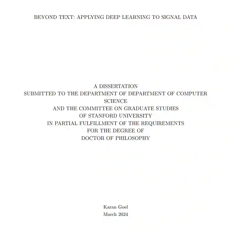 在过去的十年里,深度学习在各个应用领域取得了显著进展,这些应用范围从图像分类到语言建模。诸如自监督学习这样的序列建模原语对于自然语言处理和基因组学等领域的许多最近的突破负有重任。尽管有这些进步,现有的原语仍然难以建模从物理传感器获取的大类数据。我们将这类数据称为信号数据,它有几个独特的特征,使得建模变得具有挑战性。首先,从连续信号得到的数据的所选择的分辨率显著影响模型的训练和泛化能力。其次,信号数据通常以高速率采样,导致长或密集的数据,这需要模型具有捕获长距离依赖的强大能力。最后,信号数据高度多样化,在健康医疗、视频处理和工业感知等各个领域都有应用,这提高了为建模这些数据制定通用方法的标准。