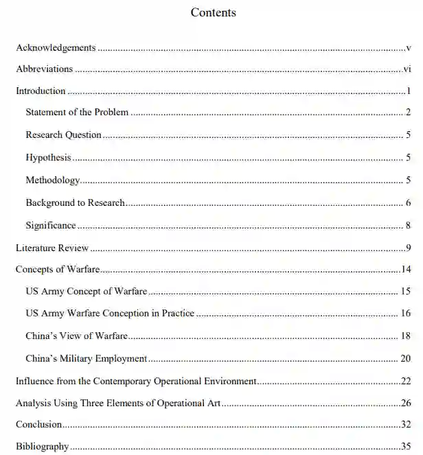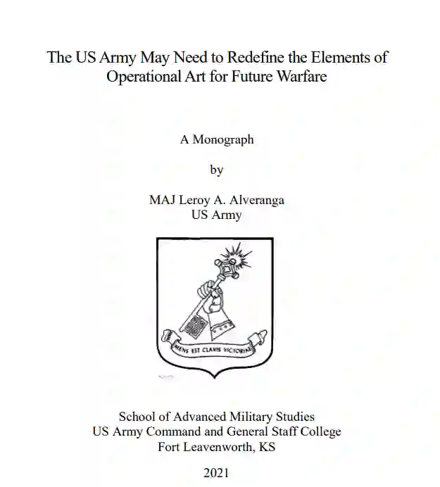美国认为中国是一个同行的威胁,如果与中国发生战争,美国可能会进行大规模作战行动(LSCO)以实现国家目标。然而,中国并不以大规模作战行动的形式来构思战争。相反,中国追求系统破坏战(SDW)。针对中国的SDW进行的LSCO可能会显示出在实现预期节奏方面的挑战。此外,针对SDW的LSCO可能揭示出美国陆军必须潜在地将其对作战风险的评估从对陆地作战的关注转移到对系统作战的关注。节奏、顶点和风险是用于评估针对SDW的LSCO挑战的十个作战要素中的三个。然而,它们也为美国陆军重新定义未来战争的作战艺术要素提供了一个先导。