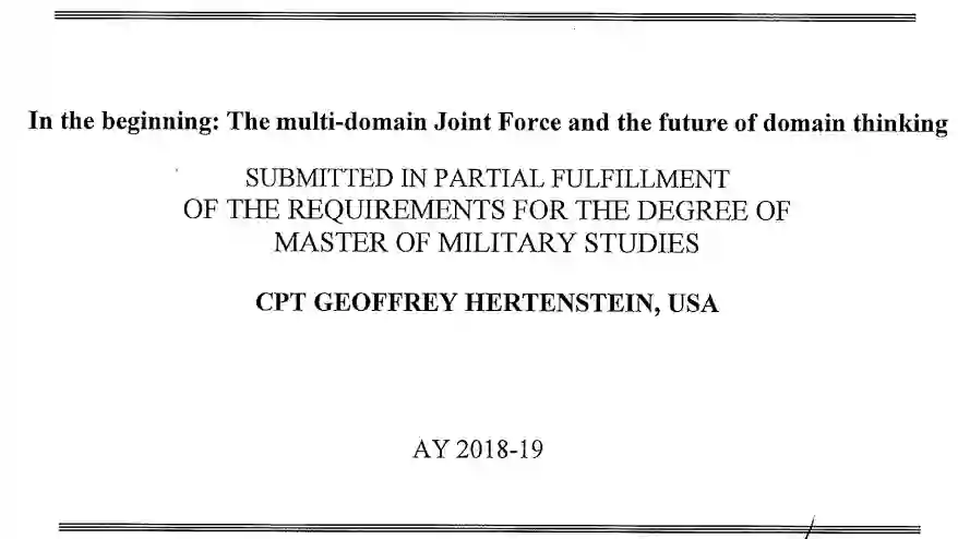 在美国陆军和联合部队中,最近出现了实施多域解决方案以克服新出现的战略和战术挑战的势头。应对这些挑战的首要机制是制定理论,让各部门承认并提供跨领域的效果以支持彼此。迄今为止,这一努力遇到了挑战,因为联合部队有定义方面的挑战,并且最终必须默许在零和资源环境中以牺牲自己的能力为代价来发展支持其他部门的能力。这项任务在最好的情况下是具有挑战性的,在最坏的情况下是无法实现的。此外,产生一个解决方案本质上增加了与执行有关的复杂性。然而,重大的理论改革是没有必要的,多领域合作的有利影响最好通过内在的模糊性来体现。
