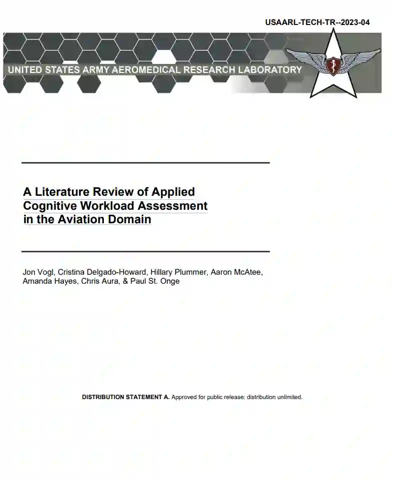 为了支持扩大的未来垂直升降(FVL)任务,美国陆军航空医学研究实验室(USAARL)正在进行研究。最终的目标是实施生理测量,作为在操作员状态监测(OSM)驱动的适应性自动化环境中,评估CWL的一种手段。本报告对最近的CWL文献进行了系统回顾,以确定哪些CWL评估技术在航空领域得到了最多的使用和成功,特别是在旋转翼航空领域。首先,提供了CWL的正式定义,以及对CWL结构越来越感兴趣的证据。随后,对不同的CWL指标进行了简要总结,并对使用多种指标,即综合指标来评估CWL进行了考虑。