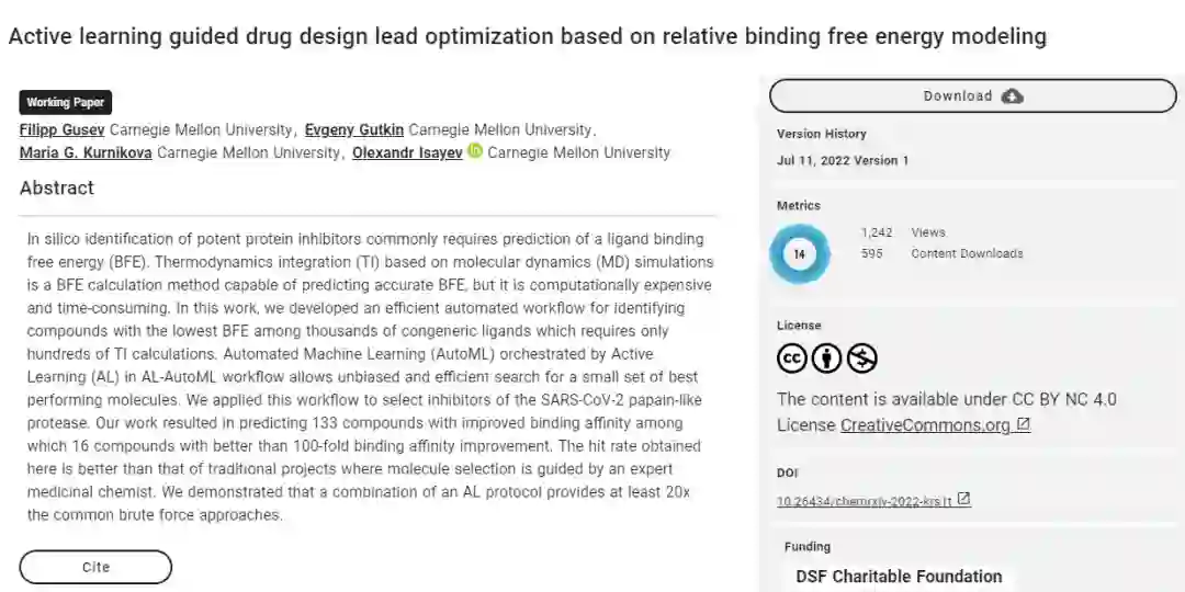 参考资料 Gusev F, Gutkin E, Kurnikova M G, et al. Active learning guided drug design lead optimization based on relative binding free energy modeling[J]. 2022.