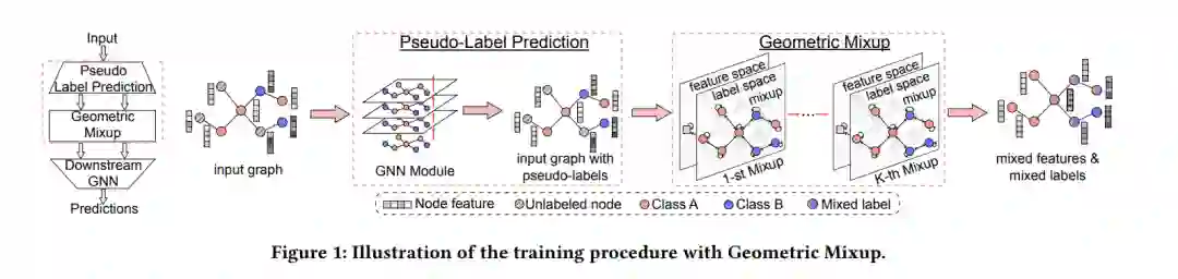 Mixup 在缓解图像分类中有限标注数据所带来的挑战方面取得了显著成功。通过对特征和标签进行插值来合成样本,Mixup 有效地解决了数据稀缺问题。然而,由于图数据的不规则性和连接性,它在图学习任务中鲜有探索。具体而言,在节点分类任务中,Mixup 在为合成数据创建连接方面存在挑战。在本文中,我们提出了几何 Mixup(GeoMix),这是一种简单且可解释的 Mixup 方法,利用就地图编辑来实现。它有效地利用几何信息,将特征和标签与附近邻域的特征和标签进行插值,生成合成节点并为其建立连接。我们进行了理论分析,阐明了使用几何信息进行节点 Mixup 的原理,强调了局部增强的重要性,这是我们方法设计的关键方面。大量实验表明,我们轻量级的几何 Mixup 在各种标准数据集上均取得了最先进的结果,特别是在有限标注数据的情况下。此外,它显著提升了基础 GNNs 在各种具有挑战性的分布外泛化任务中的泛化能力。我们的代码可以在 https://github.com/WtaoZhao/geomix 获取。