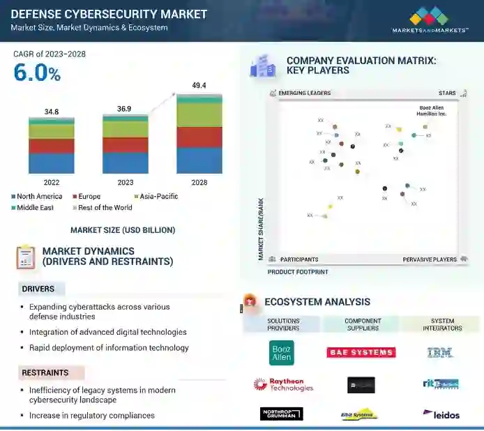 预计到2028年,国防网络安全市场规模将达到494亿美元,在2023年至2028年间以6.0%的复合年增长率增长。地缘政治紧张局势、国家支持的网络攻击以及军事行动对数字基础设施的依赖,推动了对先进网络安全解决方案的需求。
