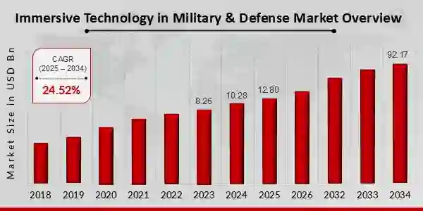 军事和国防领域的沉浸式技术市场预计将从2025年的128亿美元增长至2034年的921.7亿美元,复合年增长率为24.52%。