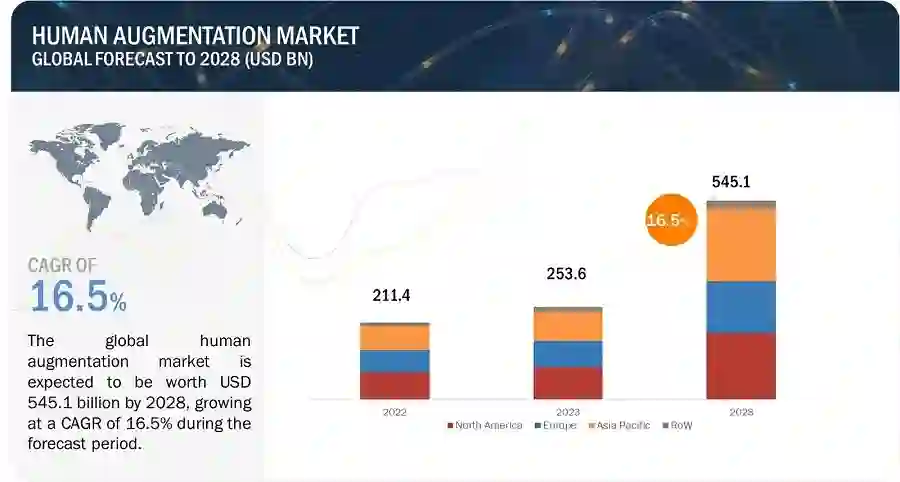 全球人体机能增强市场预计到2028年将达到5451亿美元,从2023年到2028年的复合年增长率为16.5%。