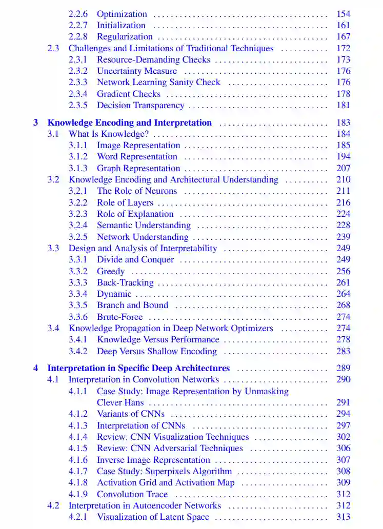 第四章专门介绍针对特定单一架构的可解释性方法。本章选择的架构有卷积神经网络、自编码器网络、对抗网络和图学习技术。我们包括了与这些架构相关的相对较新的主题,例如卷积神经网络的新概念“卷积追踪”,自编码器网络潜在空间中抽象特征的可解释性,对抗网络中判别模型的可解释性,以及图神经网络的图嵌入解释性。我们为每种架构给出了至少一个案例研究,包括来自各种应用领域的案例。我们也简要地参考了注意力网络,这种网络在设计中固有地包含了某种可解释性。