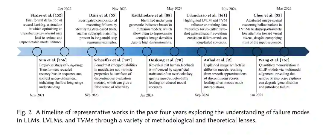 大语言模型(Large Language Models, LLMs)、大规模视觉-语言模型(Large Vision-Language Models, LVLMs)以及文本生成视觉模型(Text-to-Vision Models, TVMs)如今已支撑了众多现实应用,影响着数百万用户。截至 2024 年,已有超过 77,000 家组织使用 GitHub 的 Copilot LLM 辅助软件开发 [21]。在专业媒体领域,Adobe 的 Firefly TVM 已经生成超过 45 亿次内容 [124]。ChatGPT 现已为超过 100 万家企业用户提供日常任务支持 [46],而 Google 的 Gemini LVLM 正在跨行业自动化复杂的图文工作流 [99]。 尽管应用广泛,这些模型经常会生成错误、不一致或不连贯的内容——这一现象被称为幻觉(hallucinations)[10, 26, 105, 158]。幻觉可能带来实际危害:例如,存在缺陷的代码建议会损害软件可靠性 [97];不连贯的 AI 生成媒体降低了用户参与度 [73];而不一致的图文分析则会削弱工作流质量 [51]。随着越来越多的组织依赖这些模型来塑造数百万用户使用的下游产品与服务,如何应对语言和视觉模型中的幻觉问题已成为一项关键挑战。 尽管已有大量努力致力于解决幻觉,但仍存在两个关键空白。首先,我们对幻觉的理解仍然有限。现有研究大多集中于缓解策略,这些方法通常是对观察到的失败案例作出的回应,而非基于对幻觉成因的系统性理解。因此,许多缓解技术可能仍然是被动且不完整的,从而限制了其有效性与性能。其次,幻觉相关研究仍然是碎片化的,缺乏系统化。不同研究常常采用针对特定任务或模态的狭窄或经验性定义,这使得我们难以得出更广泛的见解或识别可能揭示更深层次成因的共性失效模式。结果是,开发具备更强泛化性和稳健性的缓解策略受到了显著阻碍。要降低幻觉在实际应用中带来的风险,亟需填补这两方面的空白:加深理解与减少碎片化。 为弥补这些不足,我们提出了对幻觉进行深入调查与系统化刻画的研究。我们的工作包含三个主要贡献: 1. 提出统一框架:该框架为幻觉提供了一个更为通用的定义。与先前工作不同,它充分考虑了不同模态和任务的差异性,大幅提升了适用性与覆盖面。这有助于减少现有讨论中的碎片化,推动围绕幻觉现象更为连贯的学术话语。 1. 开展全面综述:我们对 LLMs、LVLMs 与 TVMs 中的幻觉成因进行了系统性综述。本综述采用跨模态交织的方式组织,而非僵化的任务划分,从而更好地识别不同系统间的共性失效模式。更为重要的是,我们将该综述建立在所提出的统一框架之上,并将幻觉成因追溯到模型生命周期中可识别的机制,从而实现更深层次、更完整的理解。 1. 凝练研究洞见与未来方向:我们基于综述总结出反复出现的主题,并提出未来研究方向。论文的整体结构见图 1,近期的理解尝试则展示于图 2。