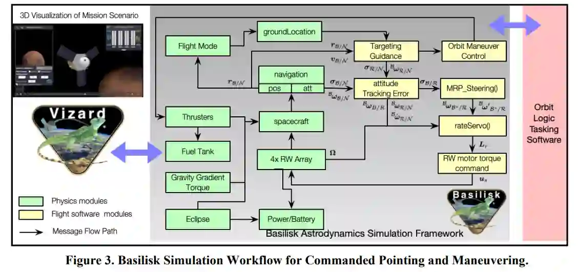 由科罗拉多大学(CU)自主飞行器系统(AVS)实验室和大气与空间物理实验室(LASP)联合开发的Basilisk天体动力学框架通过模拟运行验证了由此产生的OSCAR原型。Basilisk承载了卫星子系统面向功能的模型,这些模型代表了以前飞行的科学和探索任务。算法逻辑也已在代表当代卫星飞行处理器的计算元件上运行,以确认软件解决方案适合在受限的处理和内存环境中执行。