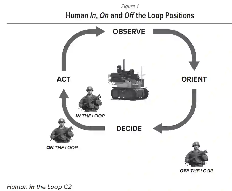 虽然 "人在回路 "代表了半自主机器人系统的C2(等待人类输入),但它也描述了非自主机器人系统的C2(人类直接控制)。鉴于关键战略问题清单中的要求具有高度的动态性和未来性,本文应被视为探索性的,而不是权威性的,因为它着眼于以下问题: