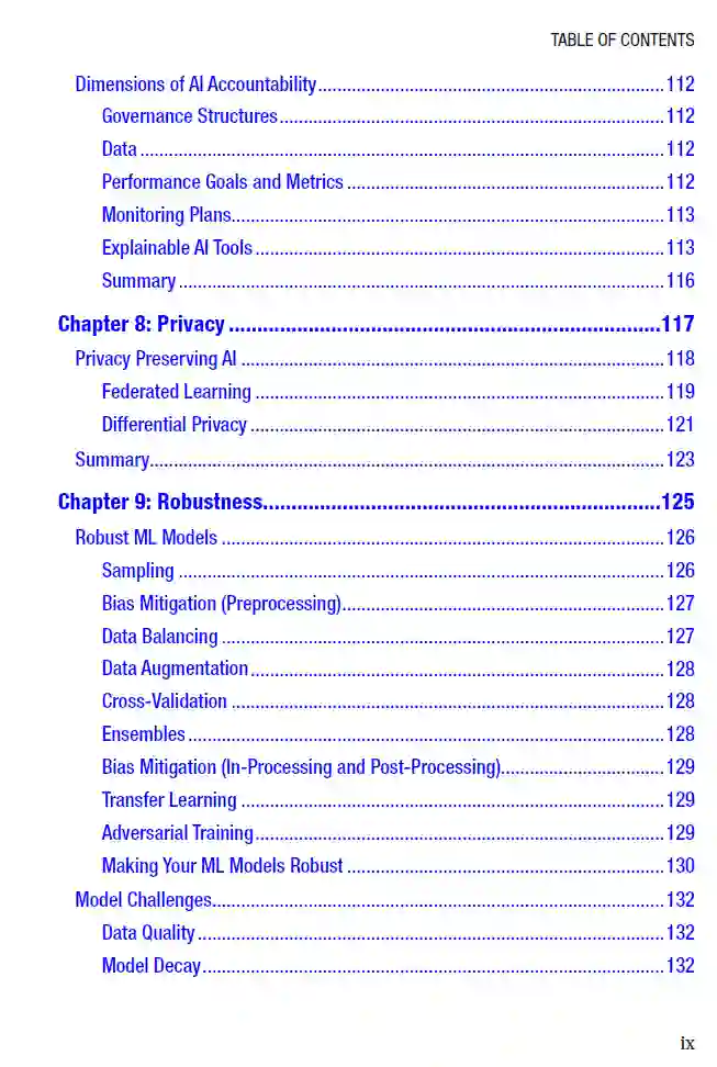 本书介绍了一个负责任的AI框架,并指导您在机器学习(ML)生命周期的每个阶段,从问题定义到部署,应用相应的流程,以减少和缓解人工智能(AI)技术中存在的风险和危害。如果正确并负责任地实施,AI现在有能力解决许多问题。本书帮助您避免负面影响 —— 在某些情况下已经导致了生命损失 —— 并开发公平、透明、安全、稳健的模型。 本书的方法提高了您对可能导致AI技术产生负面结果的错误步骤的认识,并提供了一个负责任的AI框架,以在ML中实现负责任和道德的结果。它从对责任、原则和数据的基本元素的检查开始。接下来是关于公平、透明、安全、隐私和稳健性等问题的实施指导。本书帮助您在构建AI和ML模型时负责任地思考,并指导您通过实践步骤,旨在为您的最终用户和客户提供负责任的ML模型、数据集和产品。
