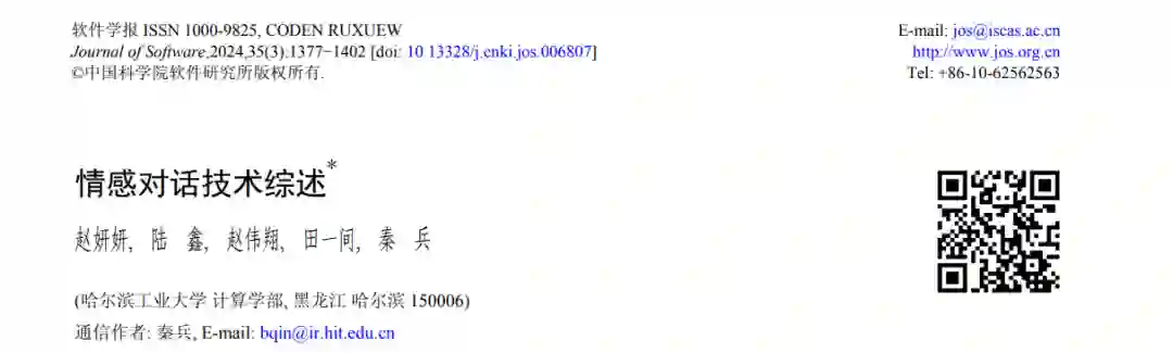 情感对话技术着眼于对话机器人的“情商”,旨在让对话机器人具有像人类一样观察、理解和表达情感的能力.这项技术可以看作是情感计算和对话技术的交叉,兼顾对话机器人的“智商”和“情商”,从而实现对用户的精神陪伴、情感慰藉和心理疏导.结合对话中情感的特点,对情感对话技术进行全面解析:1)规划对话场景下的情感识别、情感管理、情感表达等3个重要的技术点,并拓展多模态场景下的情感对话技术.2)介绍情感对话4项关键技术的最新研究进展,并总结这些技术面临的主要挑战和可能解决方案.3)介绍情感对话技术的数据资源.4)分析情感对话技术的难点,展望其未来发展方向与前景. 在情感对话技术出现之前, 最初的对话机器人的设计出发点是“模拟人的智商”, 最常见的表现形式为智能私 人助手. 这种类型的对话机器人应答迅速、博闻强记, 为客户提供专业优质的体验, 极大提升了客户的满意度. 常 见的智能私人助手类的对话机器人包括国外的苹果 Siri、谷歌 Google Assistant, 以及国内华为的智慧语音助手小 艺、科大讯飞的灵犀等. 然而, 拥有了“智商”的对话机器人有时仍然不能满足图灵测试中的类人性, 尤其对聊天机器人而言. 人类的特性是不仅可以回复合乎逻辑的答复, 还可以将情感处理得十分得当. 然而, 目前对话机器人对 于情感的处理还较为欠缺, 回复虽然在内容可以做到十分相关, 但是情感不恰当的情况却十分普遍. 人类期待对话 机器人可以脱掉冷冰的外壳, 具有处理情感的能力, 即具有“情商”, 向类人化更进一步. 在这种背景下, 情感对话技 术应运而生. 情感对话技术是指赋予对话机器人类人式的情感, 使其具有识别、理解和表达情感的能力, 为用户提供更人 性化、多样化的回复. 让计算机具有“情商”是人工智能的更高阶的目标. 人工智能之父马文·明斯基 (Marvin Minsky) 在其著作《情感机器》[1]中指出: “人工智能只有智力, 没有情感, 不是真正的智能.” 软银 CEO 孙正义认 为“未来更有价值的机器人是能够理解人心, 能够与人进行情感沟通的机器人” [2] . 这些都表明对话机器人不仅需要 “智商”, 还需要“情商”. 因此, 研制具有情感的对话机器人成为学术界和产业界共同关心的课题. 近些年来, 产业界 不少对话机器人产品均增加了情感功能, 以提升产品的趣味性和人性化程度, 如微软小冰、小黄鸡聊天机器人等. 情感对话技术是提升这些应用产品如闲聊机器人[3]、智能客服[4]、语音助手[5]等性能的核心技术. 对话机器人的情感功能重点依赖于对话语言内容的分析, 所用技术则集中于自然语言处理领域中的文本情感 计算技术. 这项技术发展至今已有 20 多年的历史, 传统的文本情感计算技术的研究对象多为产品评论信息或网民 舆情信息, 与这些传统的情感计算场景相比, 对话场景下的情感有其特殊性.