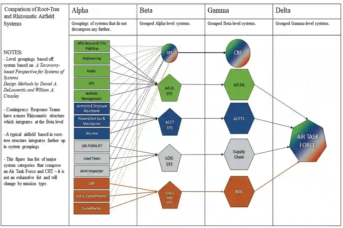 系统簇框架阐明了机场是什么、做什么以及组成机场的组件系统。下一步是重组这些机场组成系统构件,以减少与 CoG 相关的关键弱点。军事结构通常按指挥系统等等级结构组织。