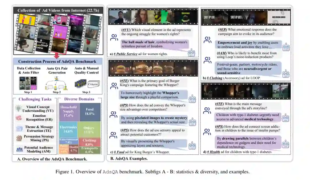 大型语言模型(LLMs)在迈向通用人工智能(AGI)的道路上取得了重要进展。与此同时,越来越多的领域特定问题(如数学和编程)正在推动这些通用模型不断演化,向着更深层次的专业化知识学习发展。因此,当下正是进一步拓展知识型 LLMs 在多样化专业应用中的时机,尽管收集包含新颖且信息丰富任务的高质量数据仍然具有挑战性。在本文中,我们提出利用广告(ad)视频作为一个具有挑战性的测试平台,以探索 LLMs 感知超越常见视觉领域客观物理内容的能力。我们的动机在于充分利用广告视频丰富线索和高信息密度的特点,例如营销逻辑、说服策略和受众互动。我们的贡献主要包括三点:(1)据我们所知,这是首次尝试利用精心设计的广告视频任务来评估 LLMs。我们提出了 AdsQA,一个由 1,544 条广告视频构建的挑战性广告视频问答基准,涵盖 10,962 个片段,总时长 22.7 小时,提供 5 个挑战性任务。(2)我们提出了 ReAd-R,一种类似 Deepseek-R1 的基于强化学习的模型,能够通过自我反思问题,并结合奖励驱动的优化生成答案。(3)我们在 AdsQA 上对 14 个顶尖 LLMs 进行了基准测试,其中 ReAd-R 取得了最新的最优性能,并以显著优势超越了具备长链式推理能力的强大竞争对手。