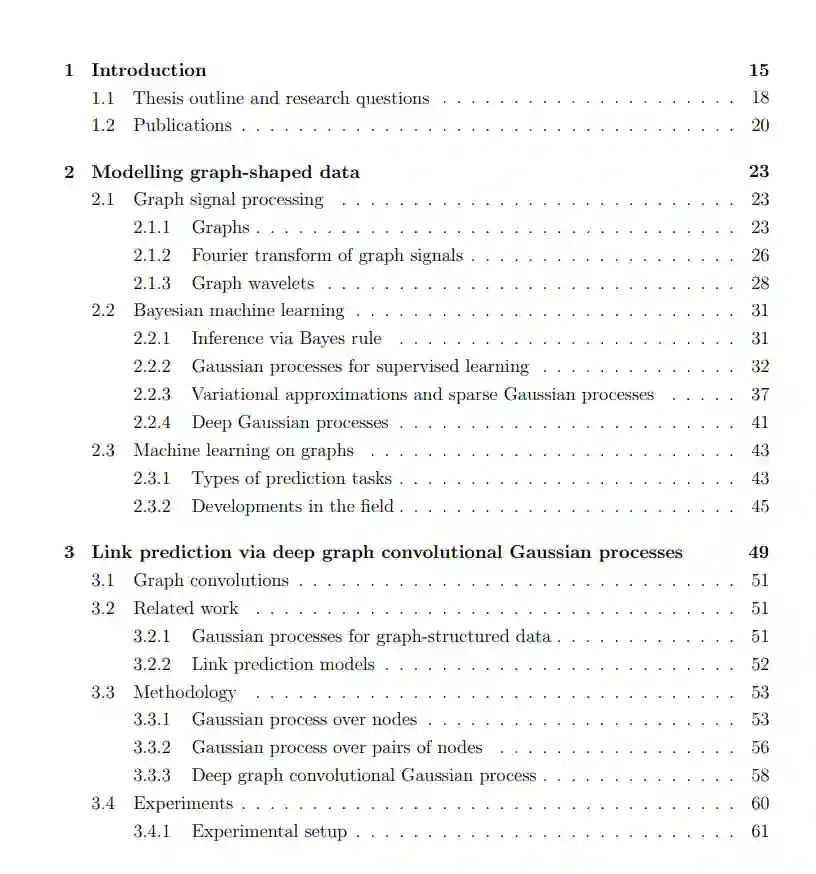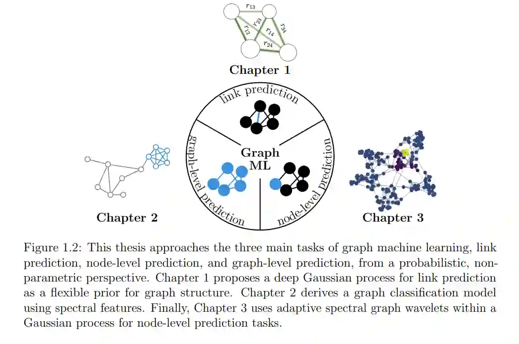 图是简单而强大的数据结构,通过节点和边描述实体及其相互关系,使其成为模拟各种实际对象(从分子到社会或生物网络)的流行候选者。由于其适用于各种建模场景,基于图形状数据的机器学习在过去几年中已成为一个重要的研究领域。虽然与机器学习模型结合时非常强大,但图在提出独特挑战方面也具有其特性,这些模型需要能够适应不仅数据高度多样化,而且图域也可能在大小、连通性模式及其与节点特征的交互等方面变化。在这项工作中,我假设高斯过程——一类贝叶斯非参数模型,特别适合于图域上的数据建模。 为了证明这一假设,我通过推导适用于图数据的高斯过程模型来展示贝叶斯非参数建模的优点,这些模型适用于图机器学习中三个最重要的任务:链接预测、图级预测和节点级预测。结果模型展示了许多优势,包括良好的模型拟合和由于其非参数性质而对过拟合的强大抵抗力,以及校准良好的不确定性估计。此外,高斯过程优化超参数的能力允许设计适应图特定特征的模型,例如图信号的平滑性和多尺度结构或特征的局部性。这些提议模型的优势,特别是与一系列基线模型相比的竞争性能,已在广泛的实际数据集上的大量实验中得到证实。