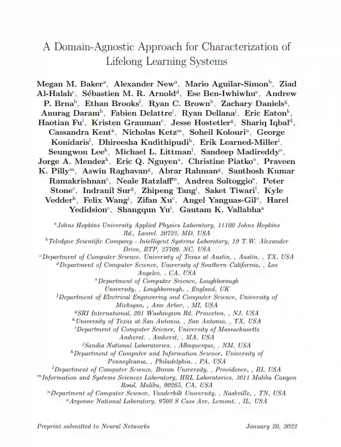 尽管近年来机器学习技术不断进步,但最先进的系统对 "真实世界 "的事件缺乏鲁棒性,即部署的系统遇到的输入分布和任务将不限于原来的训练环境,而系统将需要在部署时适应新的分布和任务。这一关键差距可以通过开发 "终身学习 "系统来解决,该系统能够:1)持续学习,2)转移和适应,以及3)可扩展性。不幸的是,提高这些能力的工作通常被当作独立的研究领域来评估,而没有考虑到每个独立能力对系统其他方面的影响。相反,我们提出了一个整体的方法,使用一套指标和一个评估框架,以一种有原则的方式评估终身学习,而不考虑具体领域或系统技术。通过五个案例研究,我们表明这套衡量标准可以为各种复杂的终身学习系统的发展提供参考。我们强调了所提出的这套指标是如何量化终身学习系统开发过程中的性能权衡的--包括广泛讨论的稳定性-弹性困境和新提出的样本效率和稳健学习之间的关系。此外,我们还提出了制定和使用衡量标准的建议,以指导终身学习系统的持续发展,并在未来评估其进展。