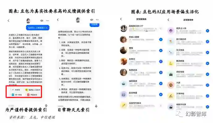2023 年 8 月 17 日,字节跳动公测基于云雀大模型开发的 AI 对话产品“豆包”,有网页端、iOS 和安卓客 户端,预置了英语学习助手和写作助手两个功能。 云雀大模型的定位是一个自然语言内容生成和内容理解的 AI 大模型,该模型基于字节机器学习平台开 发,它可以通过自然语言处理技术与用户进行对话,回答用户的问题,提供相关的信息和建议。 除了语言产品“豆包”,字节研究团队还曾公布一个多模态大模型的学术研究项目 BuboGPT,该模型能够 处理包括文本、图像和音频在内的多模态输入,即指,不仅可以理解图像、音频和文本,并将这些理解 与文本输入和输出相结合,还可以定位和描述图像中的物体以及声音的来源。 8 月 31 日,字节旗下 AI 对话应用“豆包”APP 正式对公众放开。据体验,豆包主要具备以下特点: **(1)应用场景更偏生活化 **豆包应用功能相对简约,功能也更偏向生活场景,主要围绕情感陪伴、旅行规划、日常写作等,应用场 景较文心一言、讯飞星火也较少。 **(2)为生成的事实性内容提供索引,提高可信度 **根据用户需求,若生成的内容对真实性要求较高,豆包会在生成结果末尾附带引用链接,以便用户确认 信息真实性,如专业术语、现实世界的事件或地理位置等;若用户的需求仅以聊天、联想为主,则豆包 不会生成引用链接,让聊天互动尽可能不古板。