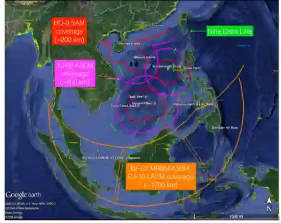 他们正加大力度反介入区域,限制美国进入该地区的能力,并建立区域拒止能力,挑战美国使用海空系统的能力,从而削弱美国援助西太平洋盟国的能力。中国目前是拥有现代防空导弹储备最多的国家之一,拥有大量的 S-300 和本土 HQ9,可瞄准超过 200 公里的巡航导弹和飞机。现代反舰和对陆攻击巡航导弹旨在阻止海军舰艇在该地区部署航母打击群,同时威胁冲绳和关岛的前沿作战基地。与俄罗斯在加里宁格勒采用复杂的 A2AD 层的方式类似,中国也依靠错综复杂的战斗机和防空系统网络来剥夺美国的行动能力。