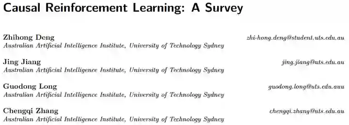 TMLR:https://openreview.net/pdf?id=qqnttX9LPo ArXiv:[2307.01452] Causal Reinforcement Learning: A Survey (arxiv.org) https://arxiv.org/abs/2307.01452 Tutorial: