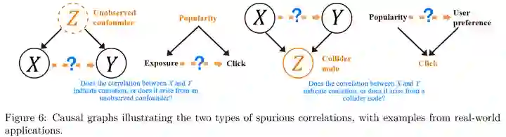 虚假相关也是一个非常普遍的问题,但是传统的强化学习很少会关注这方面的问题。下面以推荐系统为例介绍两种类型的虚假相关: