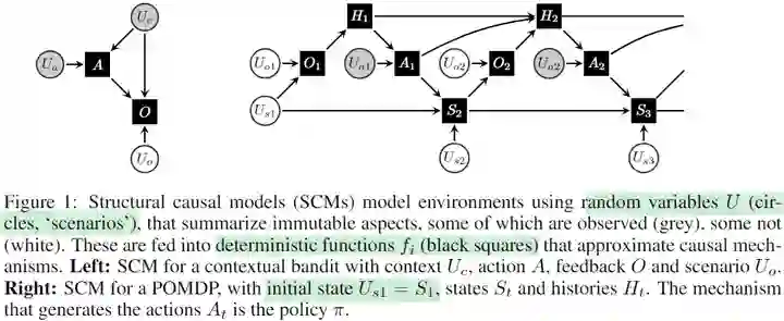 回到强化学习的话题上,基础知识就不多说了。在看完关于因果的内容之后,大家可能会对两个概念有一些思考: 1.强化学习里的策略和因果里的干预之间有什么联系?2.强化学习的基于模型的强化学习(MBRL)中的model和因果模型有什么联系? 会马上想到这两个问题说明你的思维很敏锐 。首先,在强化学习中,agents和环境交互这个过程本身就是一种干预。但这种干预通常不是直接将变量At 设定为一个固定值,而是保留了对状态变量St 的依赖。既然我们承认策略是一种干预,那就自然会有一个疑问:强化学习本身是否学习了因果关系?对于on-policy RL来说,agents确实学习了动作对结果的总效应(total effect),并且on-policy方法通常比off-policy方法效果更好也支持着这一点。但我们需要认识到,环境本身还存在其它因果关系,比如相邻时间里各状态维度之间的因果关系。如果缺乏对这些因果关系的理解,agents的能力就会局限于单个固定环境中。当环境发生变化时(比如环境中的其他因素受到外部干预),它的效果会大打折扣。对于第二个问题,尽管传统的MBRL学习了环境模型(有的时候大家喜欢用世界模型这个说法),但它止步于相关关系。一旦环境中存在不可观察的混杂因素,学到的模型也会变得不可靠(不妨思考一下前面的例子)。 在这一节的最后,我们给出论文中对causal RL的定义: Definition (Causal reinforcement learning). Causal RL is an umbrella term for RL approaches that incorporate additional assumptions or prior knowledge to analyze and understand the causal mechanisms underlying actions and their consequences, enabling agents to make more informed and effective decisions.