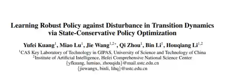 在本文中,我们提出了一种新的基于状态扰动的鲁棒强化学习方法 (State-Conservative Policy Optimization, SCPO) ,将难以提前建模的真实环境扰动转换为状态扰动并通过正则项近似后引入训练过程,以实现在使用较少先验知识的情况下增强策略迁移时的鲁棒性。具体地,我们注意到任何来自环境的扰动都将通过影响未来时刻状态的形式影响该智能体的决策轨迹。基于此,我们提出了一类 State-Conservative Markov Decision Process (SC-MDP)以显式地考虑来自状态空间的扰动,从而将以往的 robust Markov decision process (RMDP) 理论中来自状态转移函数空间的无限维约束优化问题变为来自状态空间的有限维约束优化问题,并通过一项基于梯度的正则项对该约束优化问题进行化简和近似。实验结果显示,SCPO 算法在多个 MuJoCo 仿真机器人控制任务上习得了面对环境扰动更为策略鲁棒的策略。