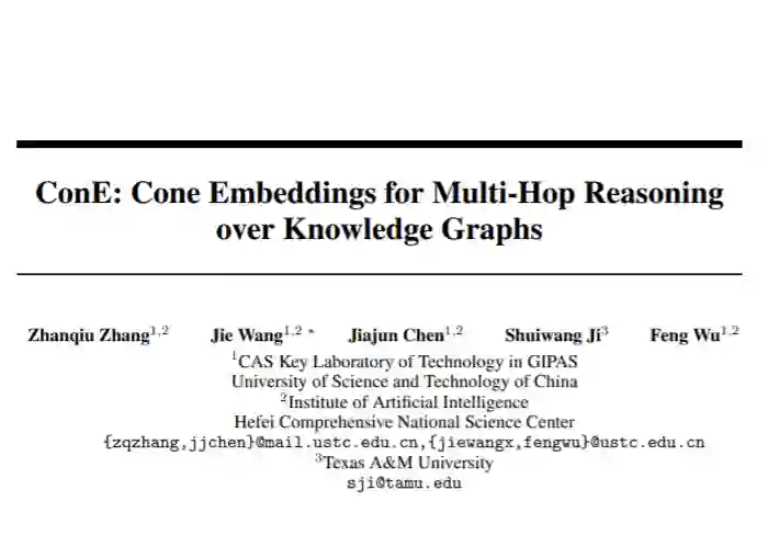 该工作题为 ConE: Cone Embeddings for Multi-hop Reasoning over Knowledge Graphs,已发表于 NeurIPS 2021。