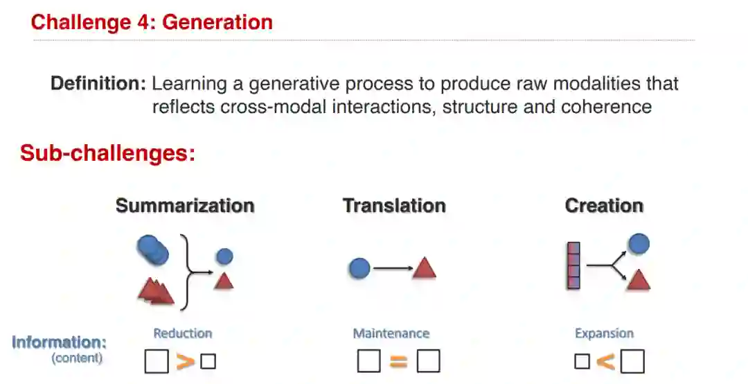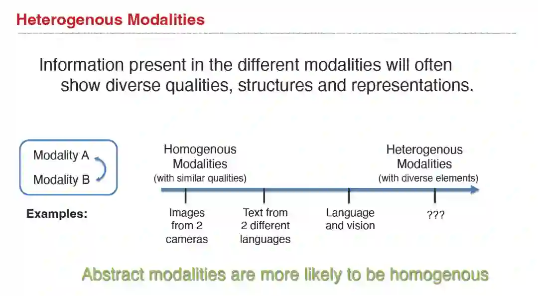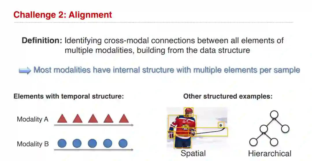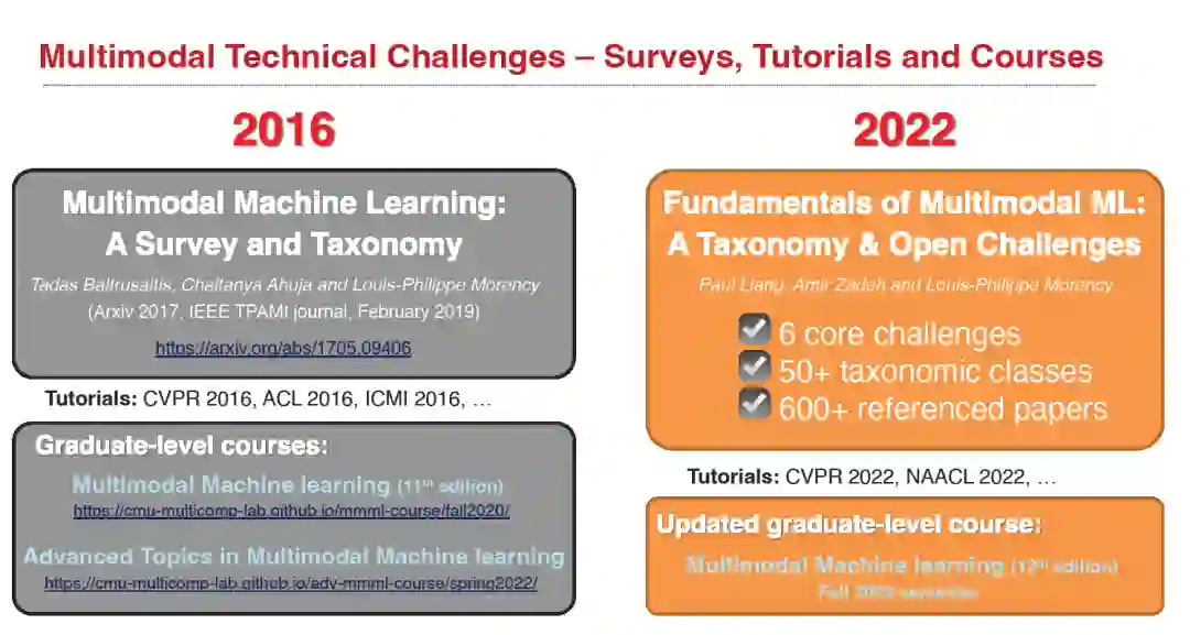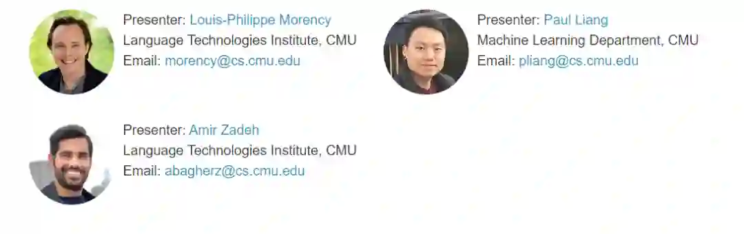 本教程建立在卡内基梅隆大学教授的多模态机器学习年度课程的基础上,是CVPR、ACL和ICMI会议上多模态学习以前教程的一个完全修订版本。本教程基于多模态机器学习中存在的核心技术挑战的修订分类,围绕这六个核心挑战: 表示、对齐、推理、迁移、生成和量化。最近的技术成果将通过这种多模态核心挑战的分类法来展示,使研究人员能够理解方法和新模型之间的相似性和差异性。本教程还旨在对多模态机器学习的未来研究方向提供一个视角。