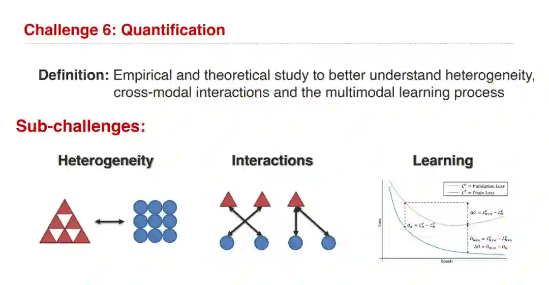 输出质量:泛化、鲁棒性、复杂性。 内部机制:可解释性,理解跨模型交互。 模态权衡: 数据集偏差、社会偏差、理论收益、优化挑战。