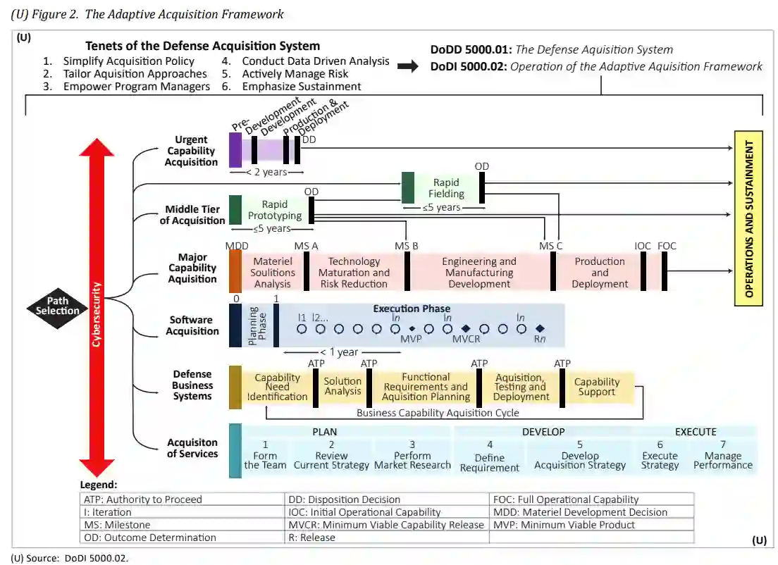 背景:LTAMDS设计为多任务雷达传感器,可360度扫描战场空间以探测追踪高速机动目标,并向导弹防御网络提供数据。自适应采办框架(AAF)支撑国防采办体系,包含中间层采办与重大能力采办等六条路径。国防部指南允许项目官员组合运用采办路径以获取单一路径无法实现的价值。