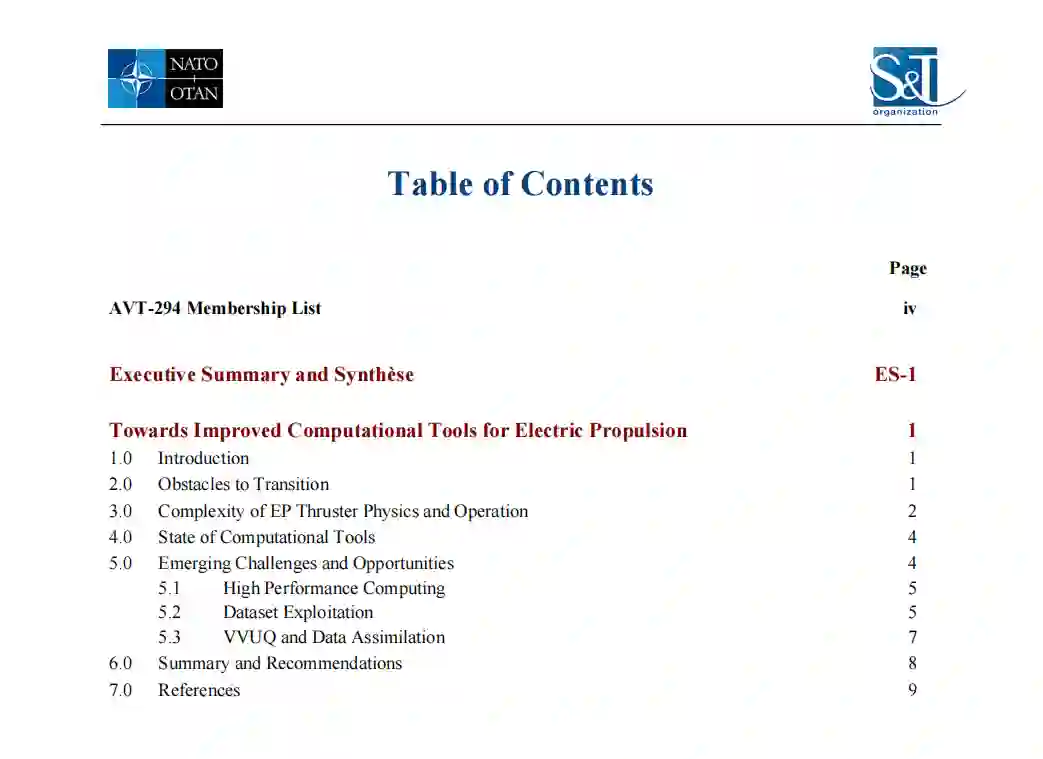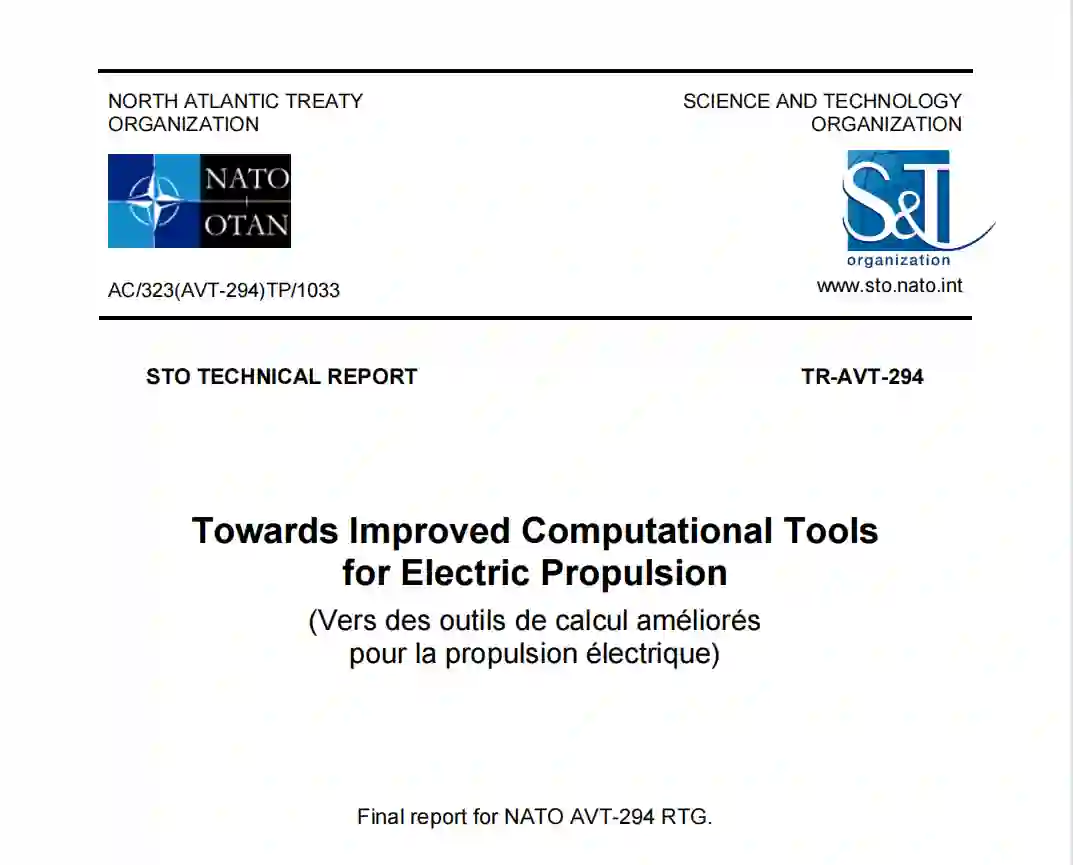 北约AVT-294 RTG的建立是为了评估和改善北约成员在支持电力推进(EP)的计算活动中的协调。这在一定程度上反映了EP被认为是北约关键空间资产的有利推进技术;然而,它也反映了计算工具的改进对于降低这些高性能推进系统的实际开发、部署和优化的高成本(包括性能和进度)至关重要。