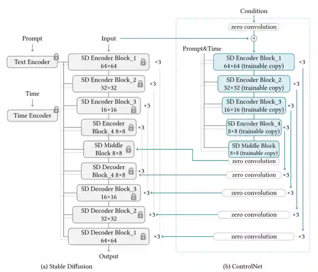 本文提出一种神经网络结构 ControlNet,用来控制预训练的大型扩散模型,并使其支持额外的输入条件。它以端到端的方式学习特定任务条件,即使在训练数据集很小时,学习也是鲁棒的。此外,训练 ControlNet 与微调扩散模型一样快,并且模型可以在个人设备上进行训练。如果有强大的计算集群,该模型可以扩展到大量数据。此外,Stable diffusion 等大型扩散模型可以用 ControlNet 增强,以实现边缘图、分割图、关键点等条件输入。