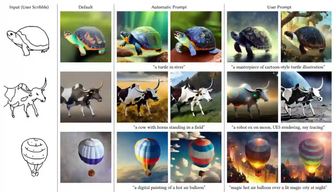 用户草图。结合HED边界检测和一组强数据增强(随机阈值、随机屏蔽涂鸦、随机形态变换、随机非极大抑制),从图像中合成人类涂鸦。从互联网上获得了50万对的涂鸦图像-caption数据对。使用前面的Canny模型作为初始化checkpoint,并使用Nvidia A100 80G用150个gpu小时训练。