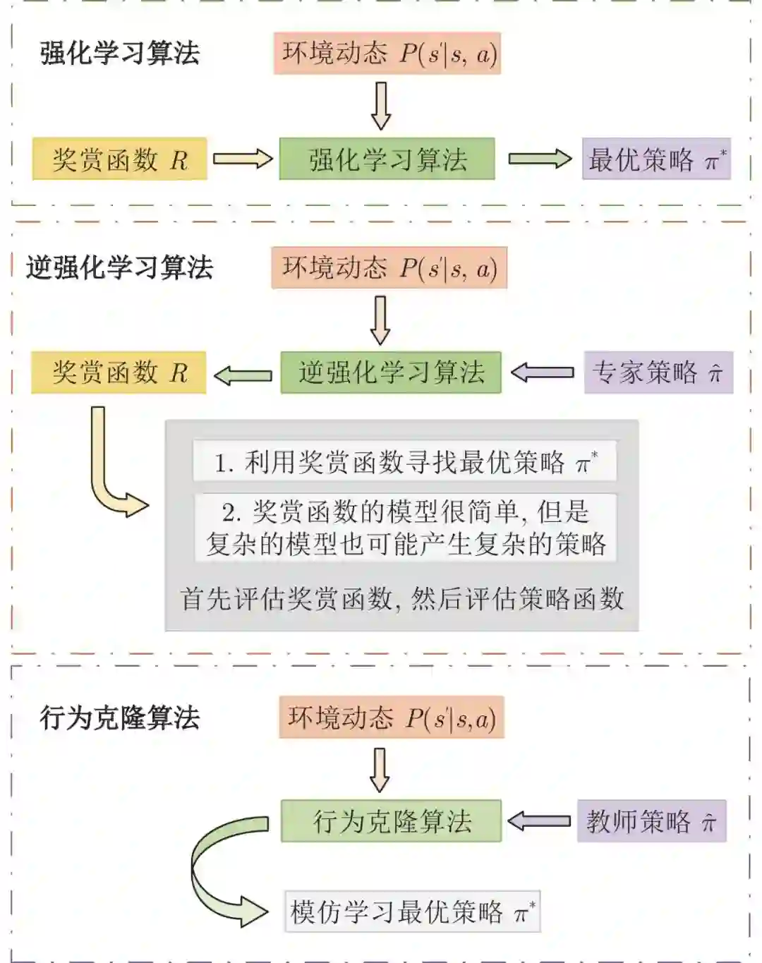 本文内容安排如下: 第1节介绍了马尔科夫决策过程、逆强化学习、强化学习、行为克隆等算法的基本概念和知识; 第2节介绍解决MDP问题的逆强化学习算法的研究进展; 第3节介绍了逆强化学习算法的应用进展; 第4节介绍逆强化学习算法面临的挑战及解决方案; 第5节对逆强化学习算法的未来进行展望; 第6节对本文内容进行总结.