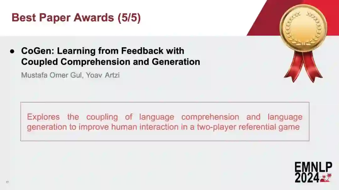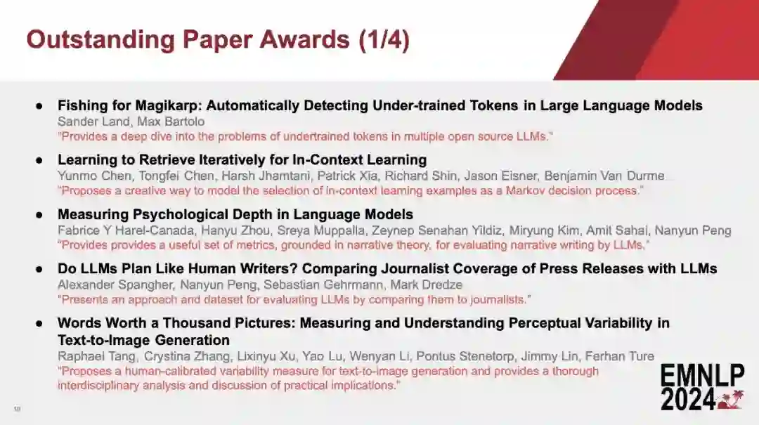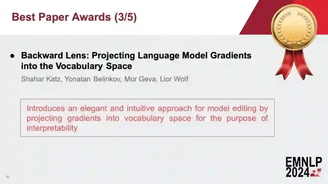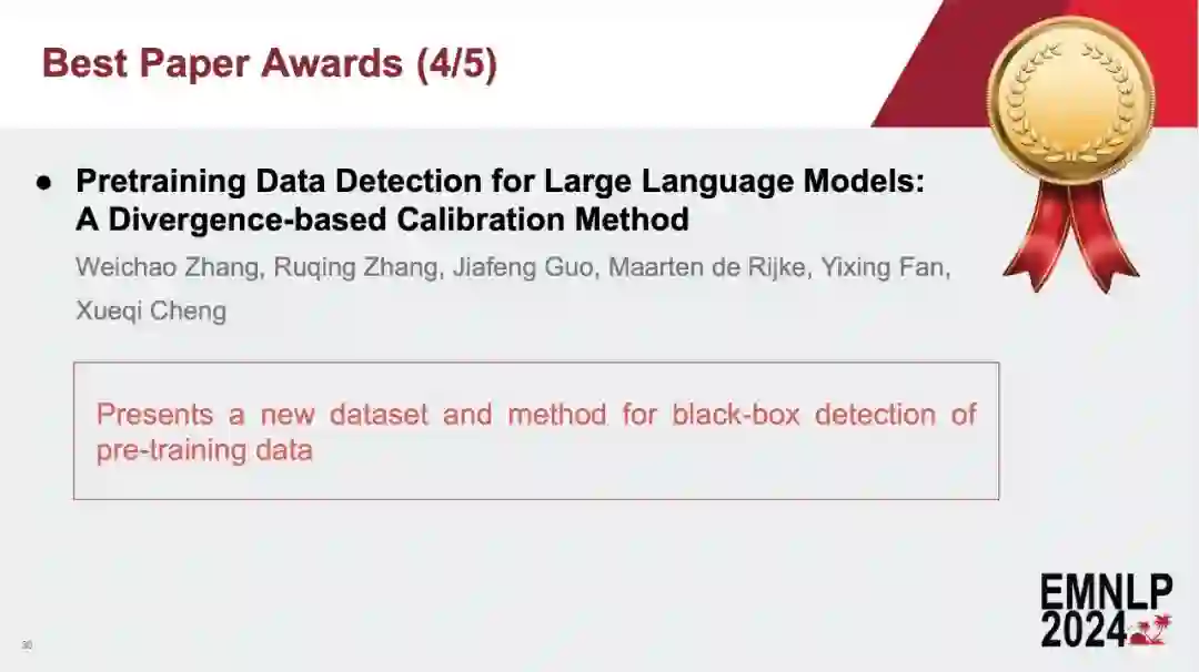 转载机器之心报道****编辑:张倩、蛋酱中科院计算所、中国科学院大学、中关村实验室合作的一篇论文拿到了 EMNLP 2024 最佳论文奖。刚刚,EMNLP 2024 论文奖项结果出炉了! EMNLP 2024 会议近日在美国迈阿密盛大开幕,现场热闹非凡。