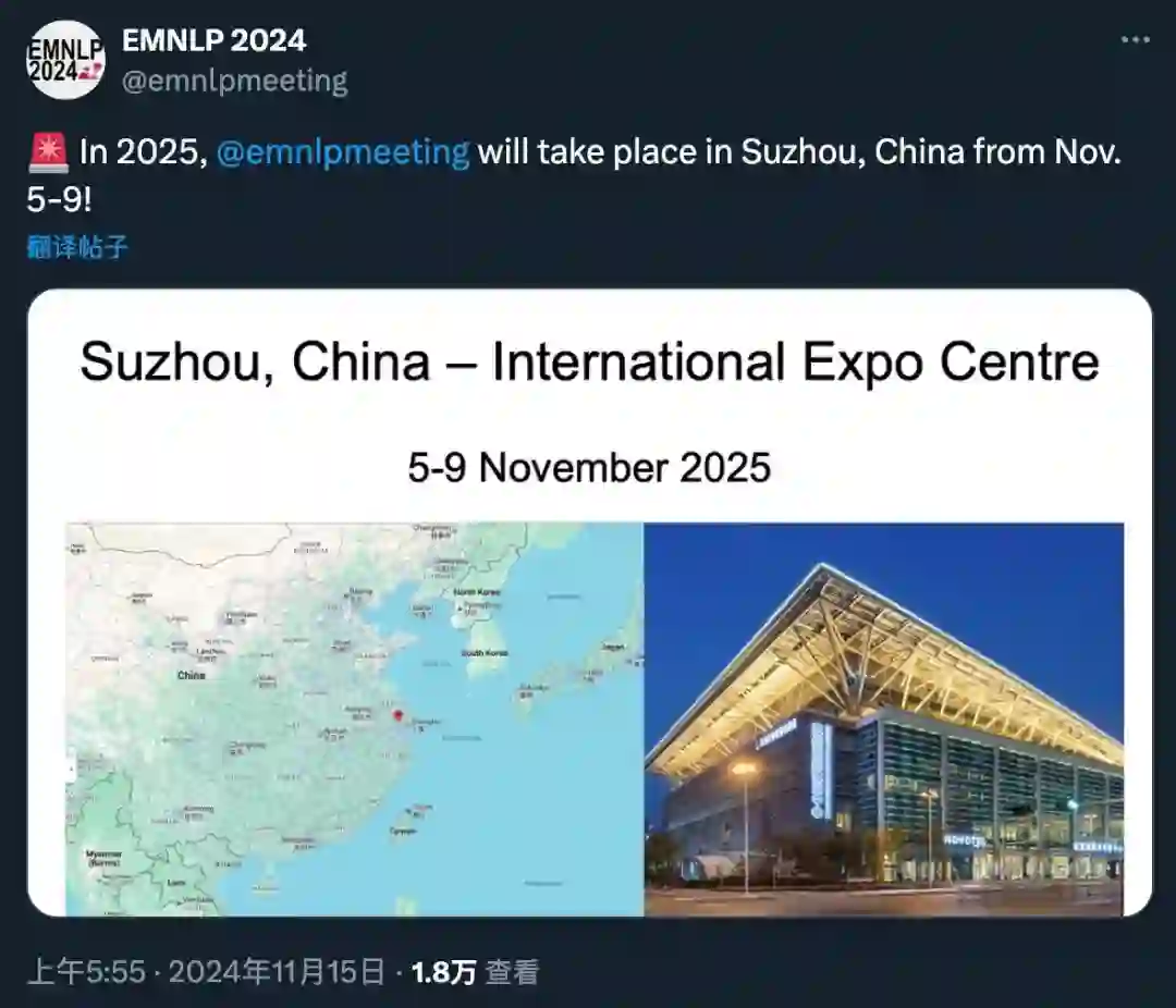 让国内研究者更加激动的是,EMNLP 2025 将在中国苏州举办:
