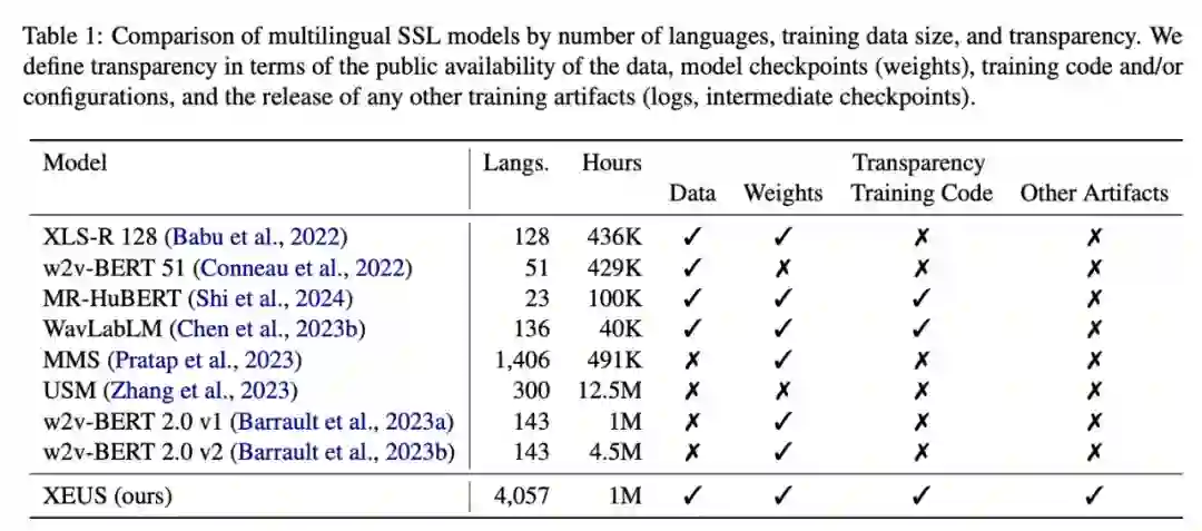 摘要:自监督学习(SSL)通过减少对标注数据的需求,帮助语音技术扩展到更多的语言。然而,目前的模型还远远不能支持全球 7000 多种语言。本文提出了通用语音跨语言编码器 XEUS,该编码器在 4057 种语言的 100 多万小时数据基础上进行训练,将 SSL 模型的语言覆盖范围扩大了 4 倍。研究者将现有公开语料库中的 100 万小时语音与新创建的来自 4057 种语言的 7400 多小时语料库结合起来公开发布。为了处理多语言语音数据的不同条件,他们还采用了一种新颖的去混响目标来增强典型的 SSL 掩蔽预测方法,从而提高了鲁棒性。随后他们在多个基准上对 XEUS 进行了评估,结果表明它在各种任务中的表现始终优于 SOTA SSL 模型,或取得了与之相当的结果。XEUS 在 ML-SUPERB 基准上创造了新的 SOTA:尽管参数或预训练数据较少,但它的性能分别比 MMS 1B 和 w2v-BERT 2.0 v2 高出 0.8% 和 4.4%。