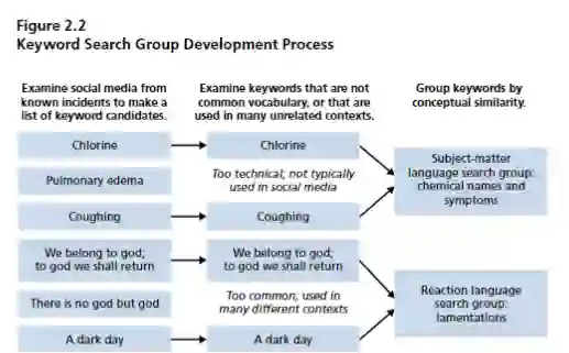 他们确定了一个四步流程:(1) 确定与运营相关的因素并检查已知事件以找到事件指标,(2) 开发社交媒体数据源,(3) 每天自动扫描 Twitter 数据中关键字使用率升高的情况, (4) 分析帖子以验证检测和提取信息。