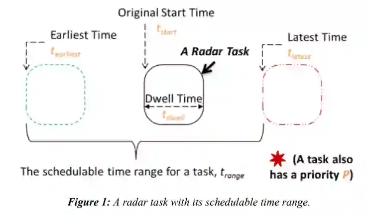 本文通过机器学习方法提出了一种雷达任务选择的主动方法,并将其设计在雷达调度流程之前,以提高雷达资源管理过程中的性能和效率。该方法由两个过程组成:任务选择过程和任务调度过程,其中任务选择过程利用强化学习能力来探索和确定每个雷达任务的隐藏重要性。在雷达任务不堪重负的情况下(即雷达调度器超负荷工作),将主动选择重要性较高的任务,直到任务执行的时间窗口被占满,剩余的任务将被放弃。这样就能保证保留潜在的最重要任务,从而有效减少后续调度过程中的总时间消耗,同时使任务调度的全局成本最小化。本文对所提出的方法进行了数值评估,并将任务丢弃率和调度成本分别与单独使用最早开始时间(EST)、最早截止时间(ED)和随机偏移开始时间EST(RSST-EST)调度算法进行了比较。结果表明,与EST、ED和RSST-EST相比,本科学报告中提出的方法分别将任务丢弃率降低了7.9%、6.9%和4.2%,还将调度成本降低了7.8倍(EST为7.8倍)、7.5倍(ED为7.5倍)和2.6倍(RSST-EST为2.6倍)。使用我们的计算环境,即使在超负荷的情况下,拟议方法所消耗的时间也小于 25 毫秒。因此,它被认为是提高雷达资源管理性能的一种高效实用的解决方案。