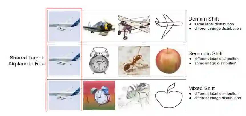 图 1:用于系统研究语义转换(即不同标签空间)和非语义转换(即不同模态)的设置。使用一个共同的目标集,可以单独研究其中一种类型的转换,也可以同时研究两种类型的转换。