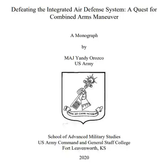 本文认为,多域作战(MDO)中 LSCO 的成功可能取决于地面机动部队能否消灭敌方的防空系统。由地面机动部队实施并支持地面机动部队的纵深机动、火力和空中优势是本文研究作战指挥官如何利用地面部队刺破防空泡沫并重建制空权的评估标准。按照我们今天的理解,地面联合作战由空地一体化机动组成,因此 IADS 的先进性可能会抵消成功的地面联合作战所需的空中支援。在当今的作战环境中,许多对手在陆基雷达和电子拦截能力方面也拥有类似的先进技术,以防止成功的 LSCO。解决这一问题的一个可能办法是,战区指挥官利用地面机动部队深入敌方领土,解除敌方的空中防御,重新夺回空中优势,并重建空地会合。
