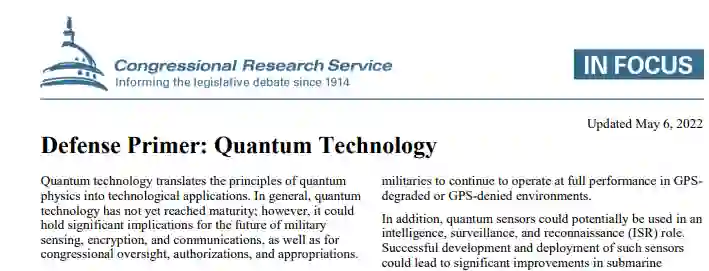 量子技术将量子物理学的原理转化为技术应用。总的来说,量子技术还没有达到成熟的程度;然而,它可能对未来的军事传感、加密和通信,以及对国会的监督、授权和拨款有重大影响。