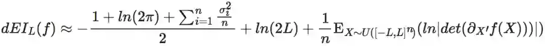 其中U([−L,L]n)表示范围在[−L,L]上的n维均匀分布,σi是输出Yi的标准差,可以通过Yi的均方误差来估计,det表示函数f的雅可比行列式。为了消除有效信息计算公式会受到输入维度的影响,作者定义了新的有效信息计算公式 ,具体公式如下所示: