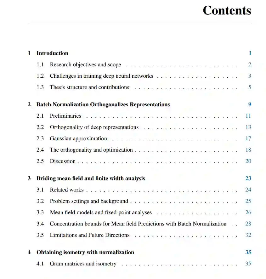 本论文探讨了训练深度神经网络中的挑战,并提出了应对这些问题的新方法。各章节按写作和发布的时间顺序排列,具体章节如下: