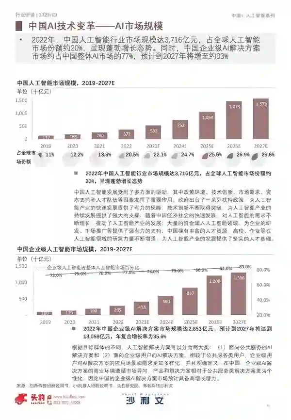 2023年被称为“AI元年”,人工智能、AI大模型概念迅速点燃市场。本篇报告重点关注人工智能相关技术在广泛的企业服务领域所带来的变革应用研究,将洞察中国AI技术如何为企业服务领域带来发展与应用方面的升级和演变,同时分析行业规模、落地应用、未来趋势,提供AI变革企业服务场景应用的理解和解读。 ** 一、GPT-4点燃AI发展浪潮,大模型引起社会高度关注**
