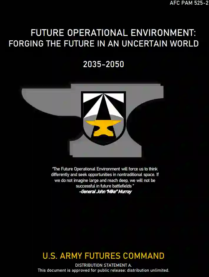 本文件描述了美国陆军的未来作战环境(FOE)。它不是为了预测 "将会发生什么",而是为了探索 "可能发生什么"。它包括了对2050年之前的未来的几种合理的替代观点,因此是制定多域作战(MDO)时间框架之外的概念的基础。它试图探索和集中作战概念,以发展能够威慑潜在对手的能力,并在必要时,打赢国家的战争。它采用了战场情报准备(IPB)过程的前两个步骤--定义和描述环境的影响--旨在作为军队对概念、能力、部队设计和科技投资进行审议和决策的基础。文件中所表达的判断并不是确定的--对于一个动态的、不确定的和快速变化的世界,没有 "正确的答案"。该文件也不是对未来对手的详细描述。相反,它回顾了两个关键的驱动因素,并通过使用描述性的替代未来来探索它们对FOE的潜在影响。